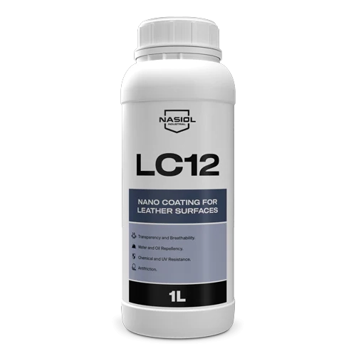 Nasiol LC‑12 je alkoholni nano‑premaz razvijen za naturalne i umjetne kožne površine — uključujući interijere vozila, namještaj, modne dodatke i obuću. Formira transparentan, prozračan zaštitni sloj koji odbija vodu i ulje, otporan je na mrlje, kemikalije i UV‑zračenje. Pruža jednostavno održavanje, usporava starenje kože, čuva boju i teksturu te produžuje vijek trajanja uz minimalno habanje.